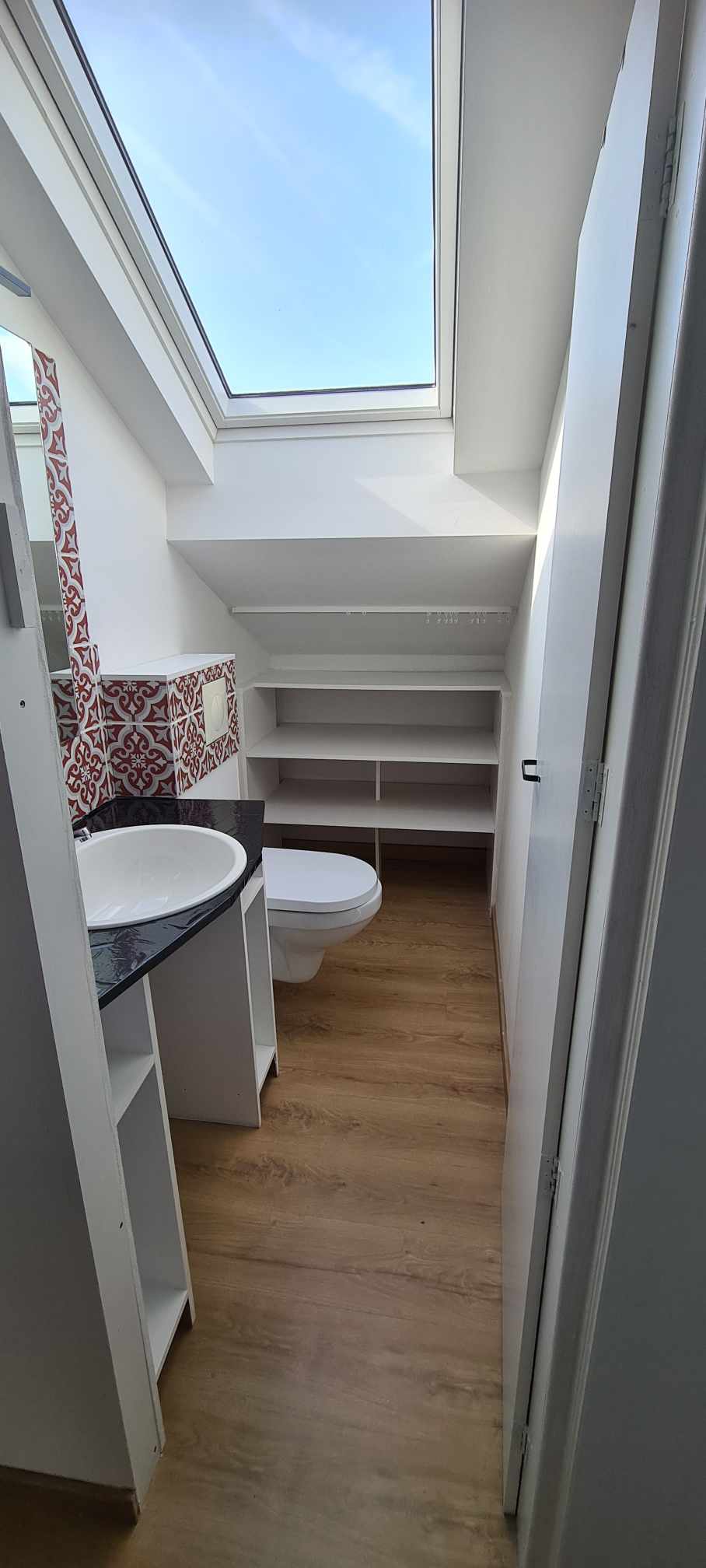 1er étage : 1 grande chambre 31m²(possibilité de la diviser en 2 chambres), SDB avec bain et double vasques, Coin de rangement.